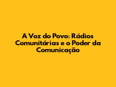 A Voz Do Povo: Rádios Comunitárias E O Poder Da Comunicação