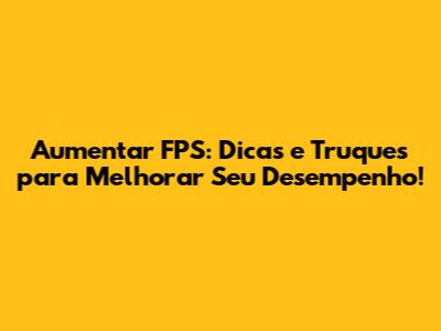 Aumentar FPS: Dicas E Truques Para Melhorar Seu Desempenho!