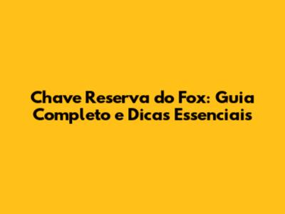 Chave Reserva Do Fox: Guia Completo E Dicas Essenciais