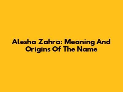 Alesha Zahra: Meaning And Origins Of The Name
