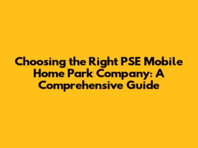 Choosing The Right PSE Mobile Home Park Company: A Comprehensive Guide