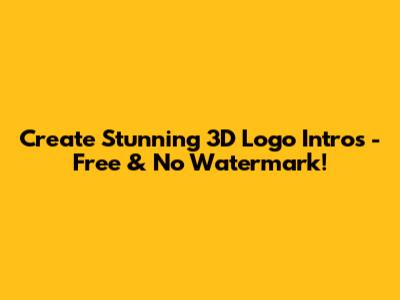 Create Stunning 3D Logo Intros - Free & No Watermark!