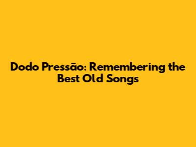 Hey guys! Today, let's dive into the wonderful world of Dodo Pressão, reminiscing about some of the best old songs that have stood the test of time. These classics not only defined eras but also continue to resonate with listeners of all ages. We will explore what made these songs so special, their cultural impact, and why they remain unforgettable. So, buckle up and get ready for a nostalgic journey filled with unforgettable melodies and timeless lyrics.