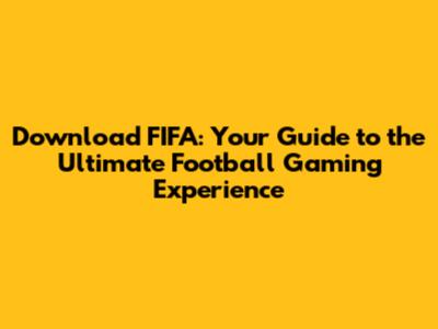 Download FIFA: Your Guide To The Ultimate Football Gaming Experience