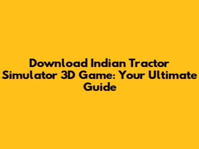 Download Indian Tractor Simulator 3D: APK Guide