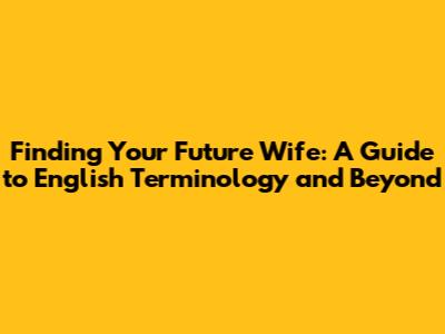 Key English Terms for Your Future Wife