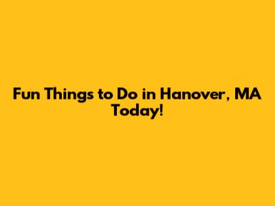 Hey guys! So, you're looking for some awesome things to do in Hanover, Massachusetts, huh? You've come to the right place! Hanover is a charming town with a lot to offer, from outdoor adventures to cozy indoor spots. Whether you're a local or just visiting, this guide will help you discover the best activities Hanover has to offer. Let's dive into some fun ideas for today, ensuring a memorable experience in this lovely New England town. Get ready to explore, have fun, and make some amazing memories in Hanover! We'll cover everything from parks and recreation to delicious dining options and local events. So, grab your friends, family, or go solo – Hanover is ready to welcome you with open arms. Let's make today unforgettable!