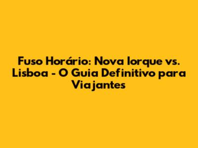 Fuso Horário: Nova Iorque Vs. Lisboa - Guia Completo