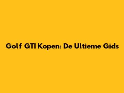 Golf GTI Kopen: De Ultieme Gids