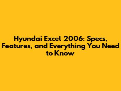 Hyundai Excel 2006: Specs, Features, And Everything You Need To Know