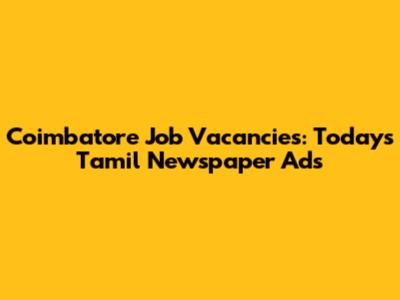 Coimbatore Job Vacancies: Today's Tamil Newspaper Ads