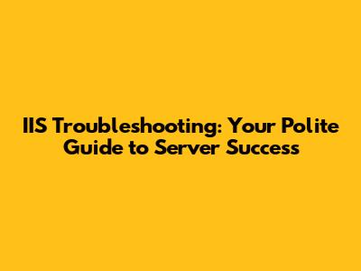 IIS Troubleshooting: Your Polite Guide To Server Success