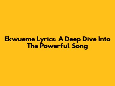 Ekwueme Lyrics: A Deep Dive Into The Powerful Song