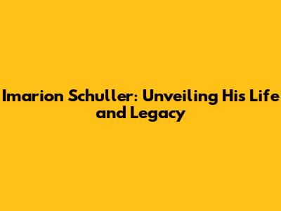 Imarion Schuller: Unveiling His Life And Legacy
