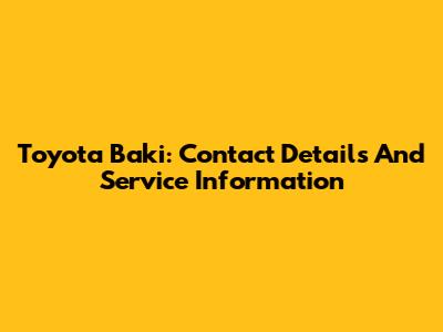 Toyota Baki: Contact Details And Service Information