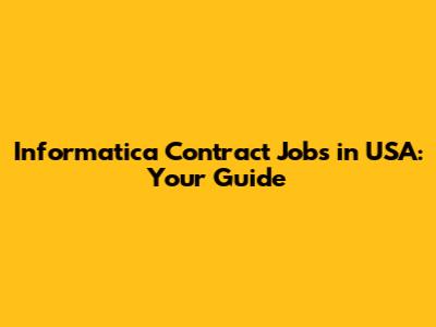Informatica Contract Jobs In USA: Your Guide