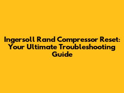Ingersoll Rand Compressor Reset Guide
