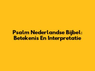 Psalm Nederlandse Bijbel: Betekenis En Interpretatie