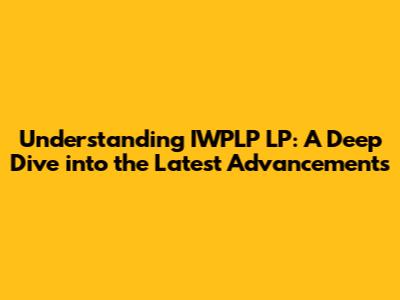 Understanding IWPLP LP: A Deep Dive into the Latest Advancements