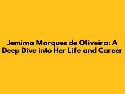 Jemima Marques De Oliveira: Biography, Career, And More