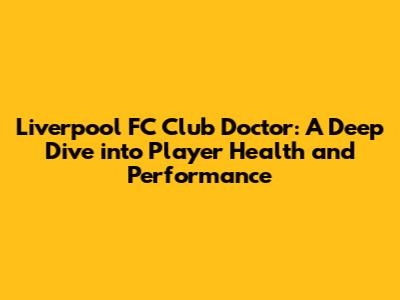 Hey guys! Ever wondered about the unsung heroes behind the scenes at Liverpool FC? We're talking about the Liverpool FC Club Doctor, and the entire medical team, of course. These folks are absolutely crucial to the success of the team, working tirelessly to keep our favorite players fit, healthy, and performing at their best. Let's dive deep into their world, shall we? We'll explore their crucial responsibilities, the fascinating field of football medicine, and how they contribute to the overall well-being and peak performance of the players. Buckle up, because we're about to go on a fascinating journey into the heart of Liverpool's medical operations! This deep dive will also touch on injury management strategies, concussion protocols, and the cutting-edge methods used to optimize player health. We'll also examine how the club doctor works within the framework of the Premier League, ensuring compliance with all regulations while prioritizing player welfare.