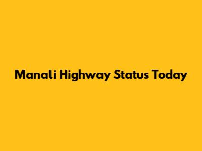 Manali Highway Status Today