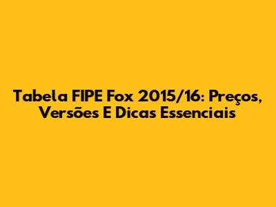 Tabela FIPE Fox 2015/16: Preços, Versões E Dicas Essenciais