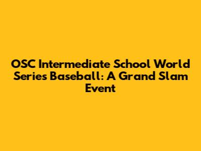 Hey baseball fans! Get ready to dive deep into the exciting world of the OSC Intermediate School World Series Baseball. This isn't just another school sports event; it’s a thrilling showcase of young talent, dedication, and sportsmanship. Whether you're a parent, a student, or simply a baseball enthusiast, there's something here for everyone. So, grab your mitt, and let's explore what makes this series so special.