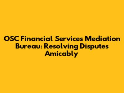 By understanding the principles, processes, and benefits of mediation, you can make informed decisions about how to resolve financial disputes and protect your interests. The OSC Mediation Bureau stands as a testament to the power of collaboration, communication, and self-determination in achieving just and sustainable outcomes.