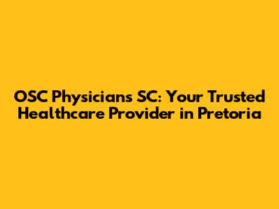Hey there, healthcare seekers! If you're on the hunt for top-notch medical care in Pretoria, you've probably stumbled upon OSC Physicians SC. They are a big name, right? Well, they're more than just a name; they're a dedicated team of healthcare professionals committed to providing exceptional medical services to the Pretoria community. So, what exactly makes OSC Physicians SC stand out? Let's dive in and explore what they have to offer, why they're a solid choice, and how they're making a difference in the healthcare landscape.