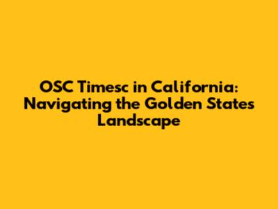OSC Timesc In California: What You Need To Know