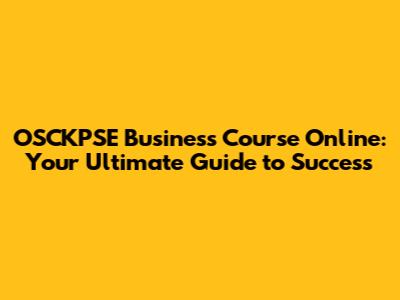OSCKPSE Business Course: Your Online Path To Success