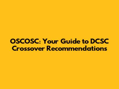 OSCOSC: Your Guide To DCSC Crossover Recommendations