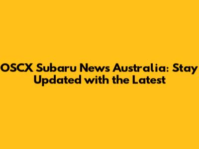 OSCX Subaru News Australia: Latest Updates And Insights