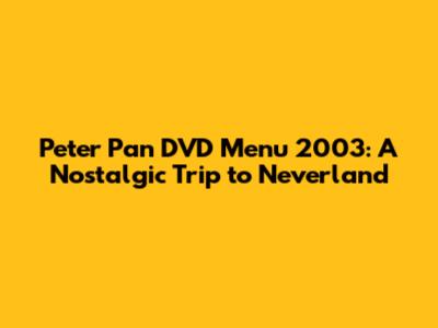 Peter Pan DVD Menu 2003: A Nostalgic Trip To Neverland