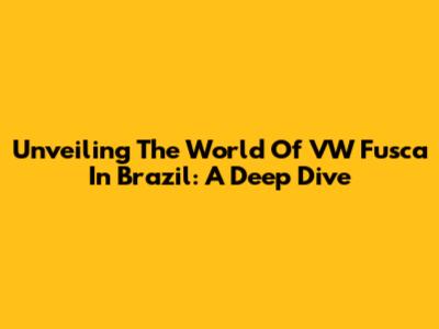 Unveiling The World Of VW Fusca In Brazil: A Deep Dive