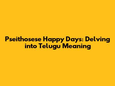 Pseithosese: Unveiling The Telugu Meaning Of 'Happy Days'