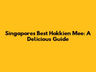 Singapore's Best Hokkien Mee: A Delicious Guide