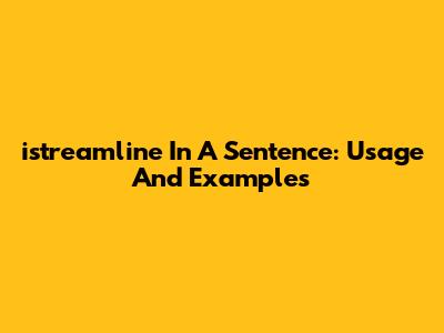 "istreamline" In A Sentence: Usage And Examples