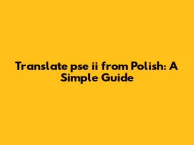 Translate 'pse Ii' From Polish: A Simple Guide