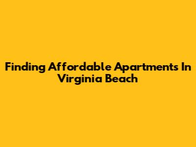 Finding Affordable Apartments In Virginia Beach