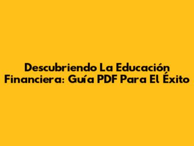 Descubriendo La Educación Financiera: Guía PDF Para El Éxito