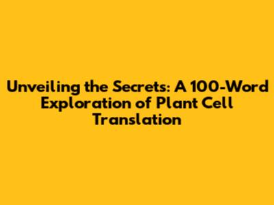 Deciphering the Language: The Core of Plant Cell Translation