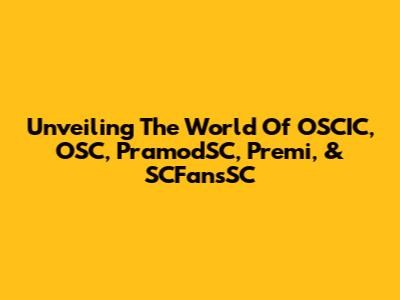 Unveiling The World Of OSCIC, OSC, PramodSC, Premi, & SCFansSC