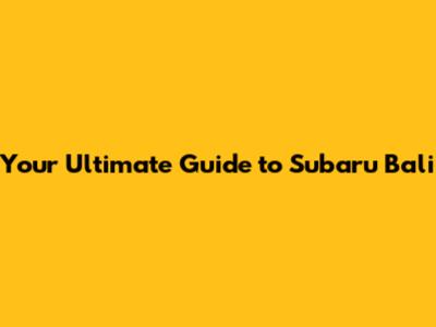 Your Ultimate Guide To Subaru Bali